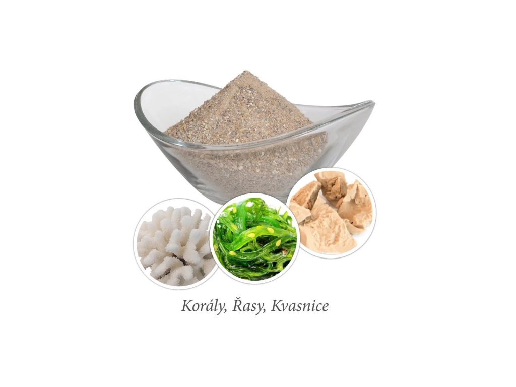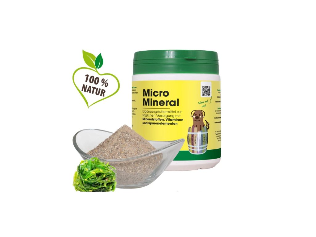 100% Přírodní doplněk stravy Micro Mineral obsahuje minerály, vitamíny a stopové prvky z mořských korálů, řas, kvasnic a obilných klíčků. Pomáhá vyrovnat nutriční deficity způsobené nevhodnou výživou a podporuje růst, imunitu, látkovou výměnu, pevné kosti, zdravé klouby, zuby, kůži a krásnou srst. Je vhodný k přimíchání do krmiva nebo masa pro lepší kondici.