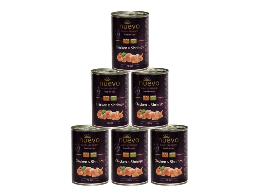 Nuevo Cat konzerva Adult Chicken & Shrimps 400 g 5+1 ZDARMA