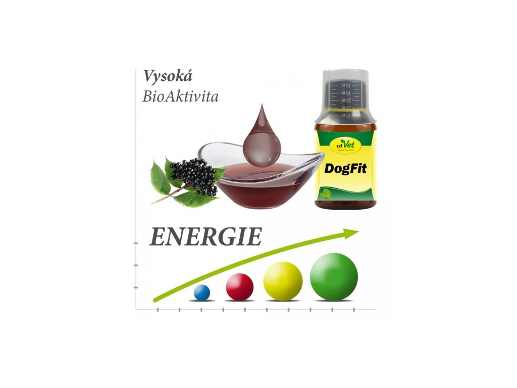 BioAktivní doplněk stravy z kvašeného (fermentovaného) ovocného octu a obilí, bezové šťávy a bylin obsahuje dobré bakterie (probiotika) pro lepší kondici střev (dobré trávení). Dog Fit regeneruje detoxikační orgány (játra, ledviny), trávicí ústrojí (sanace, výživa) a odstraňuje nános ve střevě, který je živnou půdou pro špatné bakterie, plísně, červy a jiné parazity. Kromě regenerace doplňuje vitamíny, enzymy a širokou škálu minerálních látek. Regenerace organismu je přínosná prevence a pomoc při zdravotních problémech.